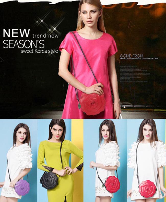 【Omdi】精緻玫瑰手提包-紫色/桃色/紅色/橘色/黑色/粉色/綠色購物型錄2018